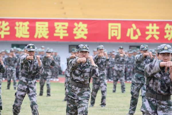 来自体育学院的学生带来了紧张激昂的战术表演,沉浸式演绎军训版绝地逢生。他们在训练场上穿梭如猎豹,行动敏捷而果断。每一个战术动作都充满力量感,仿佛真的置身于激烈的战场之中。他们用汗水与拼搏,展现出湖师体育人的坚韧与勇毅,为军训增添了一抹别样的精彩与震撼。