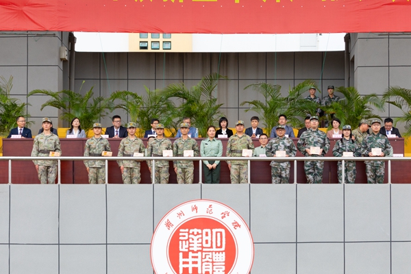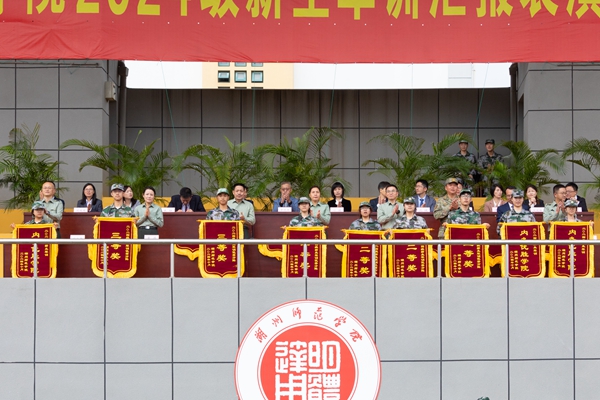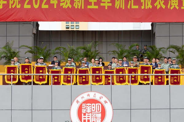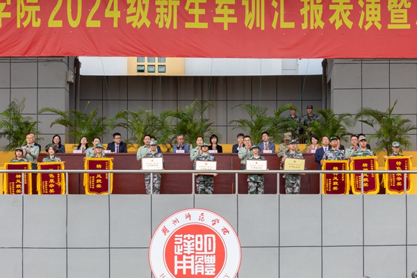 10月21日上午,我校2024级新生军训汇报表演暨总结表彰大会在东校区体育场举行。校党委书记许慧霞,校党委副书记、军训旅政委丁敢真,副校长舒志定,承训部队领导、军训旅旅长高杰中校出席大会。各学院党委(总支)书记、副书记,军训领导小组成员、军训教官,全体教导员、2024级全体参训新生参会。大会由丁敢真主持。