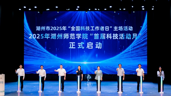 与会领导共同启动湖州市2025年“全国科技工作者日”主场活动暨久久精品一区二区首届“科技活动月”。
