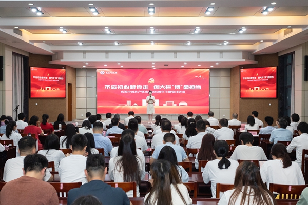 为庆祝中国共产党成立104周年,团结带领全校各级党组织和广大师生党员坚定不移听党话、矢志不渝跟党走、砥砺奋进建新功,6月23日下午,学校举行“不忘初心跟党走,创大拼‘博’显担当”庆祝建党104周年主题党日活动。校党委领导班子成员出席,各二级党组织书记、党群部门负责人和师生党员代表等参加活动。