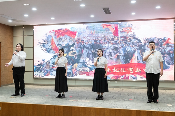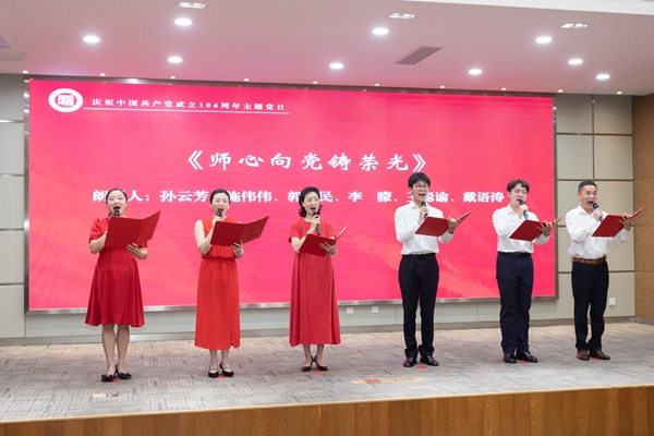 人文学院师生党员和退休教师党员共同演绎了原创诗歌朗诵《师心向党铸荣光》,真挚抒发了对党和教育事业的无限热爱和对学校“创大拼‘博’”梦想的美好追求。