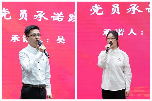 理学院应用物理系教师党员吴璠、教育学院心理学专业学生党员陆熹代表师生党员分别作出郑重承诺。
